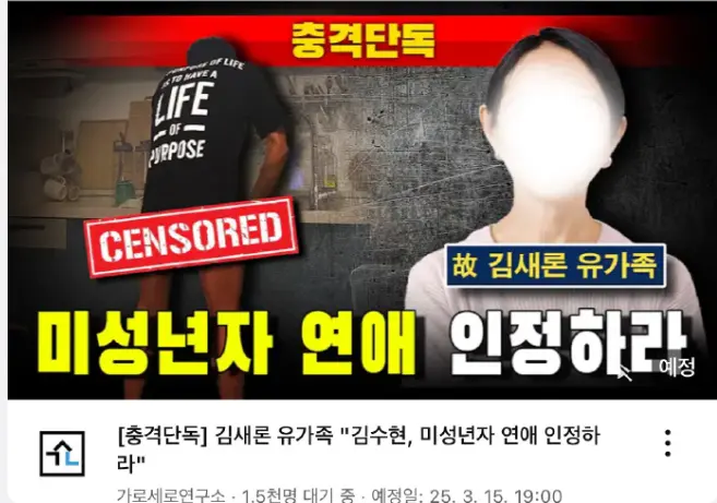 从 3 月 10 日开始,韩国知名爆料频道“가로세로연구소”(横竖研究所)连续几天放出猛料,直指金秀贤与已故童星金赛纶曾经恋爱,甚至暗示两人的关系与金赛纶的死亡有关。