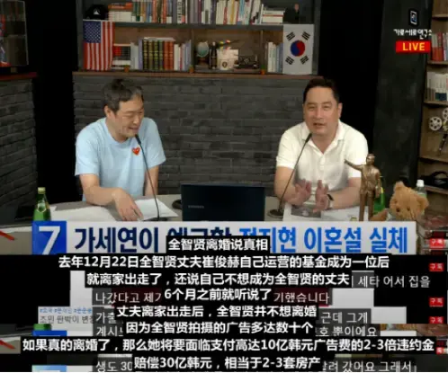 而且,2021年他还爆料说全智贤夫妻二人早已经分居,原因是丈夫崔俊赫“不想再当全智贤背后的男人”离家出走,甚至在分居期间出轨。