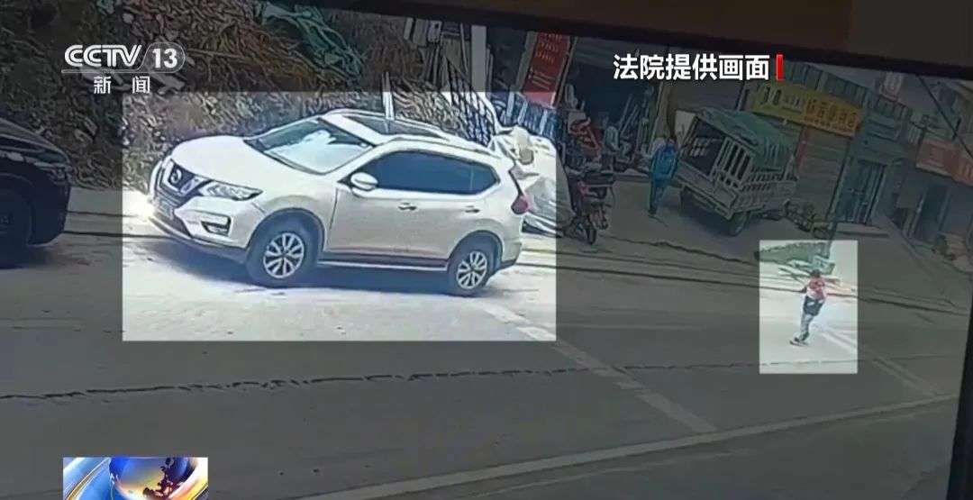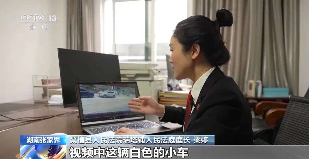 桑植县人民法院瑞塔铺人民法庭庭长梁婷:这是原告在本案中所提交的一份视频资料,视频中这辆白色的小车就是原告甄某某的受损车辆,这位走向车辆的这个小孩儿就是被告刘某的孩子刘某某。可以从视频中看到,刘某某在走向受损车辆的途中,手中就一直有点和丢的动作。在他走到原告车辆的前部,可以看到他明显有往原告车辆里面丢放东西的一个动作。