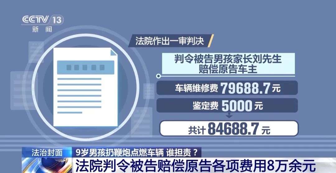 随后,法院作出了一审判决,判令被告男孩家长刘先生赔偿原告车主车辆维修费79688.7元、鉴定费5000元,共计84688.7元。