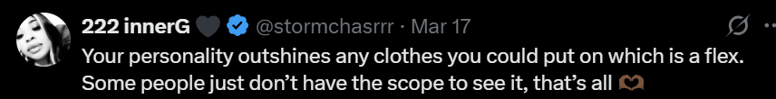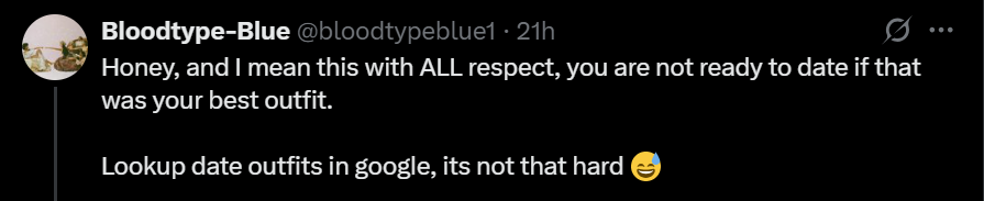 还有人说:“你挺帅的,穿搭也没问题。你是个讨人喜欢的人……真正懂得欣赏你的人不会在意那些细节。”