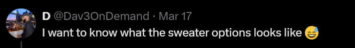 他还补充说:“我其实带了一件很可爱的毛衣,但穿上可能有点太热。”