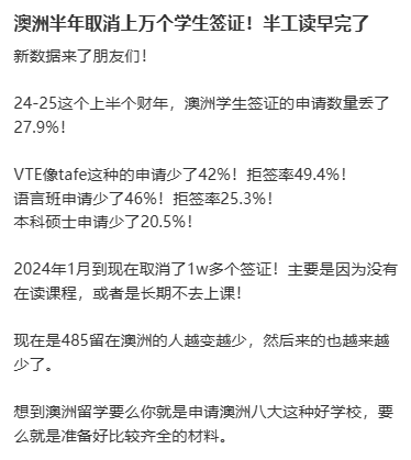 事实上,从去年年底开始,澳洲就已经陆续出台了一系列严格控制留学生人数的政策。