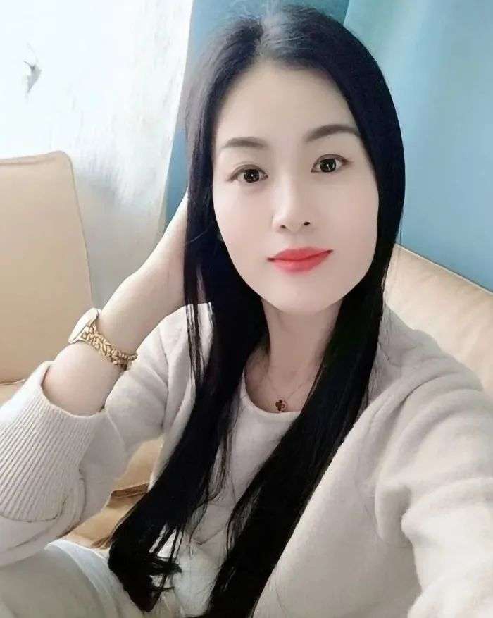 39岁的她,看起来年轻漂亮,长发披肩,坐在米色沙发上,戴着金色手表,穿着白色上衣,气质完全不像传统印象中的奶奶。