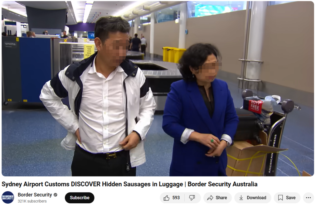 根据视频显示,一对刚抵达澳洲的中国夫妇在悉尼机场引起了海关注意——