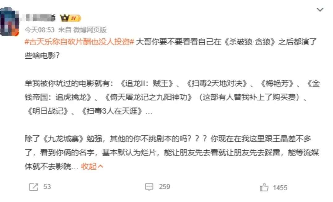收藏古天乐称自砍片酬也没人投资,有人8年都没涨工资!港片没人看了?网友热议