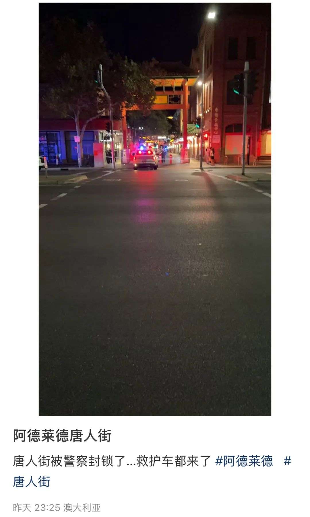 昨晚,阿德市中心唐人街发生严重斗殴事件,现场聚集大量警车和救护车,引发市民广泛关注。