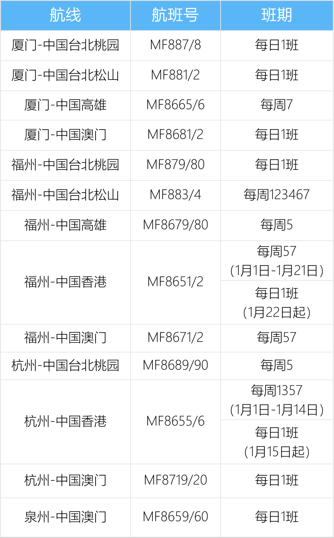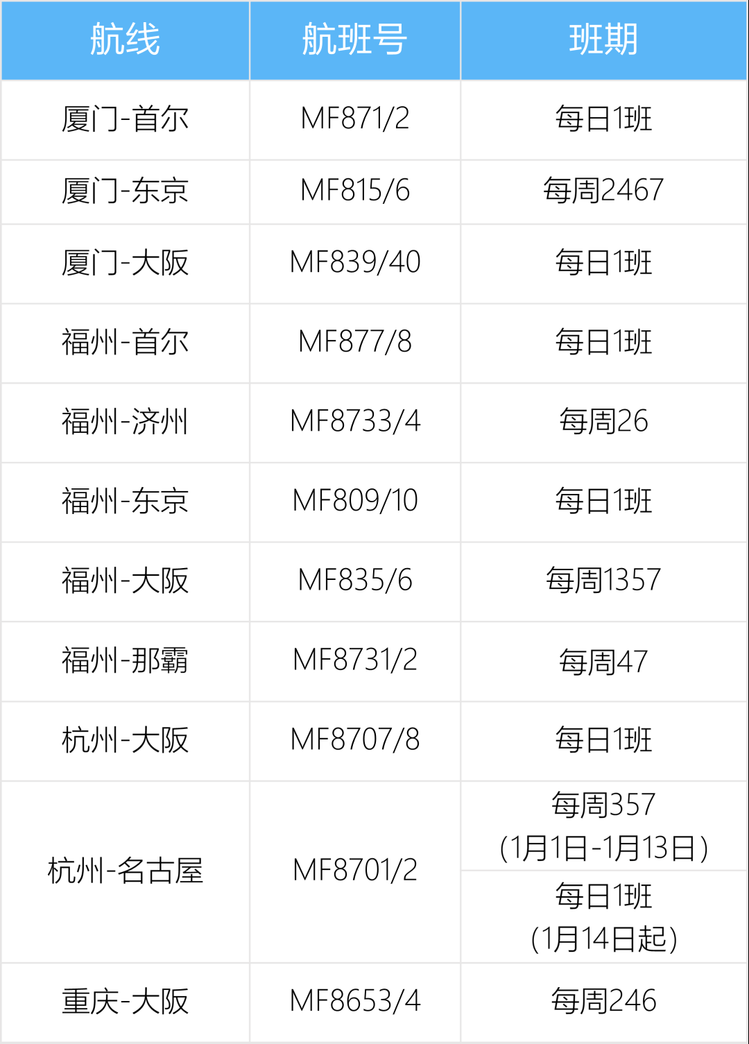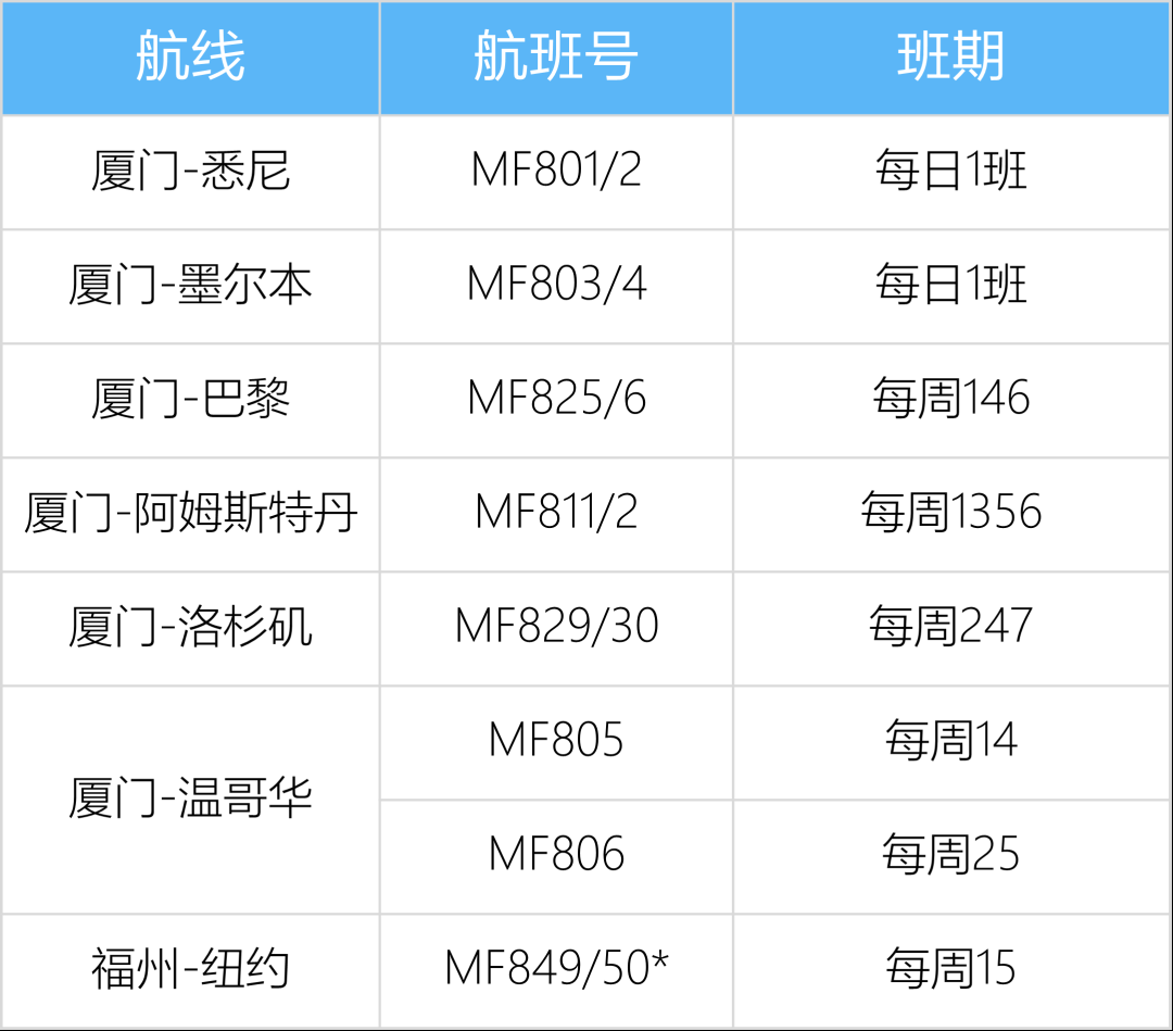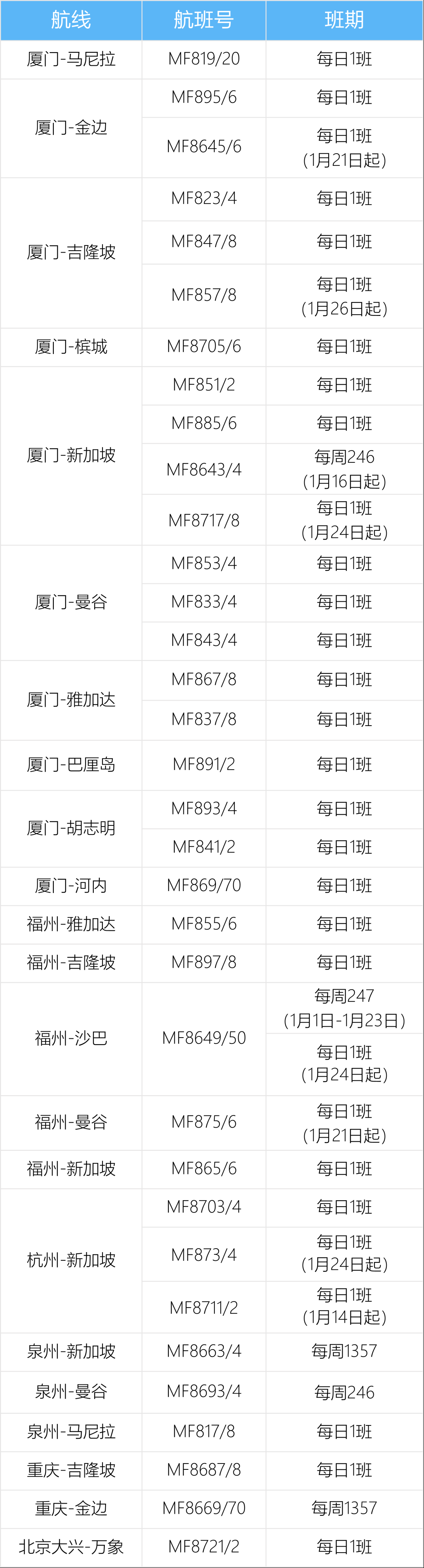 厦航发布最新2025年1月国际及地区航班信息,一起来看看吧!