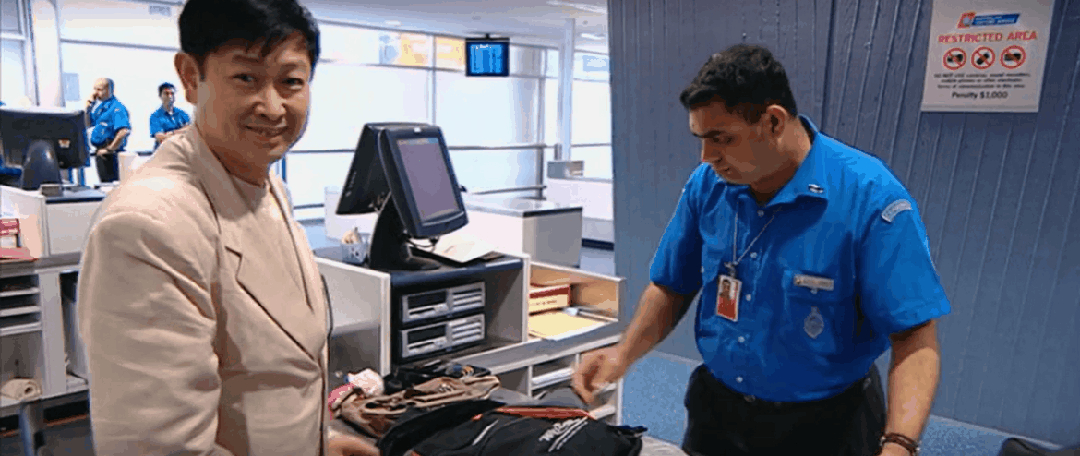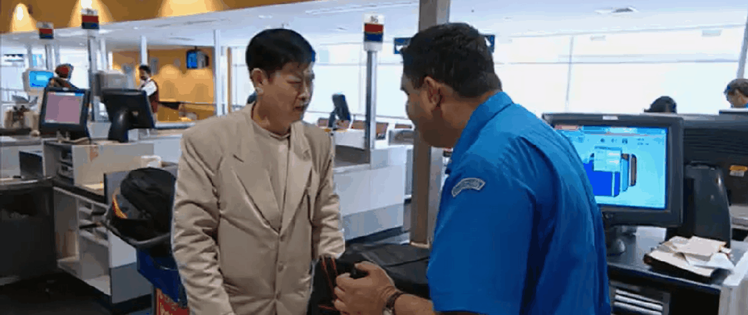 涉及违法携带现金的行为,海关人员分头行动。一位工作人员去做他的背景调查,另一位则在确认是否是他本人的行李,以及他会不会说英文,他微笑着用仅会的英语说“I don`t know English”。