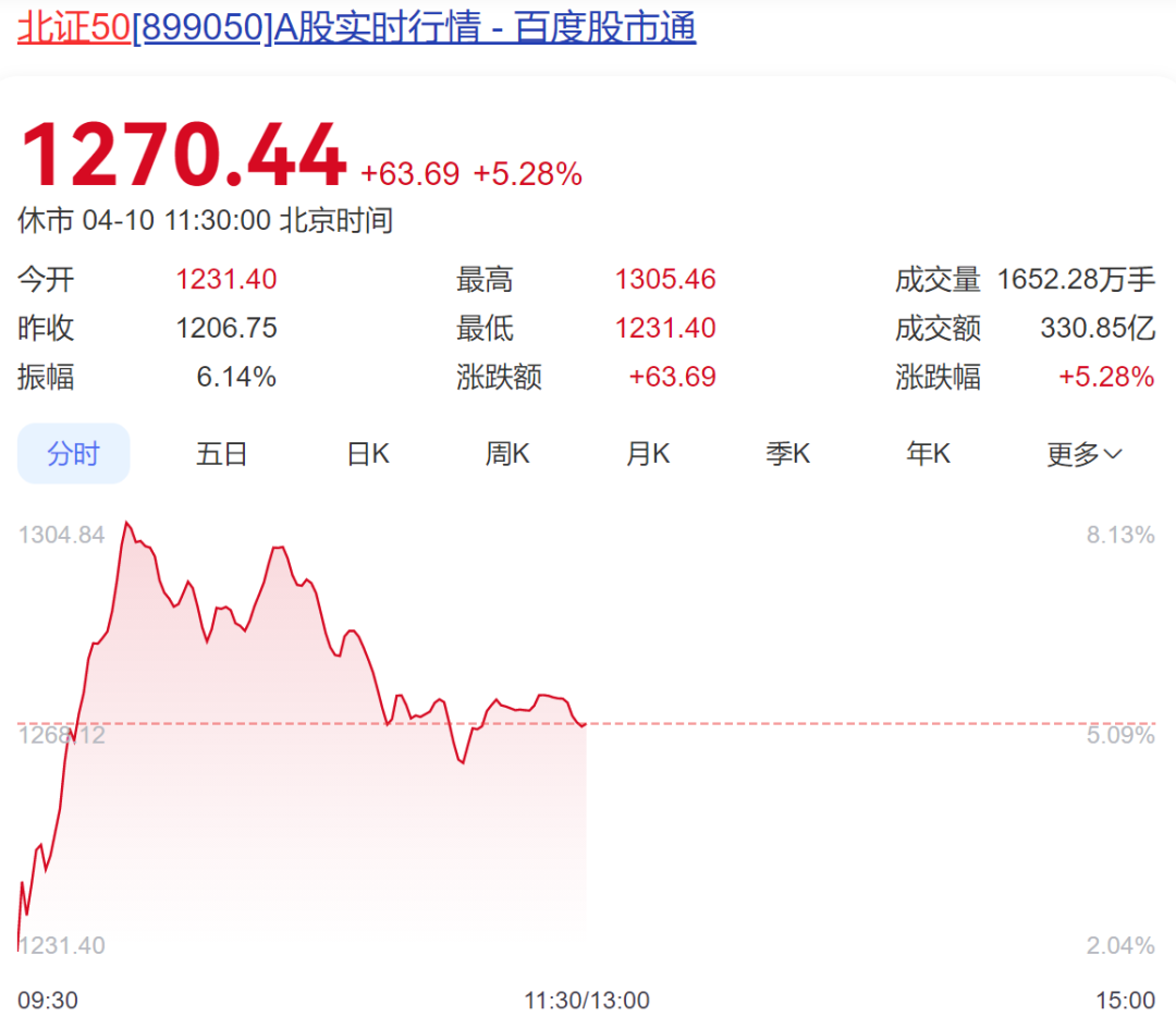 市场早盘延续反弹,创业指领涨,北证50涨超5%。A股半日成交额1.14万亿元,较上个交易日放量237亿元。截至收盘,沪指涨0.93%,深成指涨2.19%,创业板指涨2.4%。