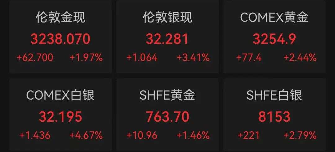 4月11日,国际金价再度大涨,现货黄金站上3200美元关口,再创历史新高。截至当天收盘,伦敦金现涨超1.9%,报3238.07美元/盎司,COMEX黄金涨2.44%,报3254.9美元/盎司。