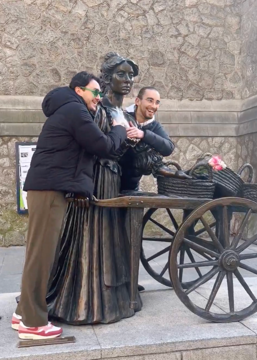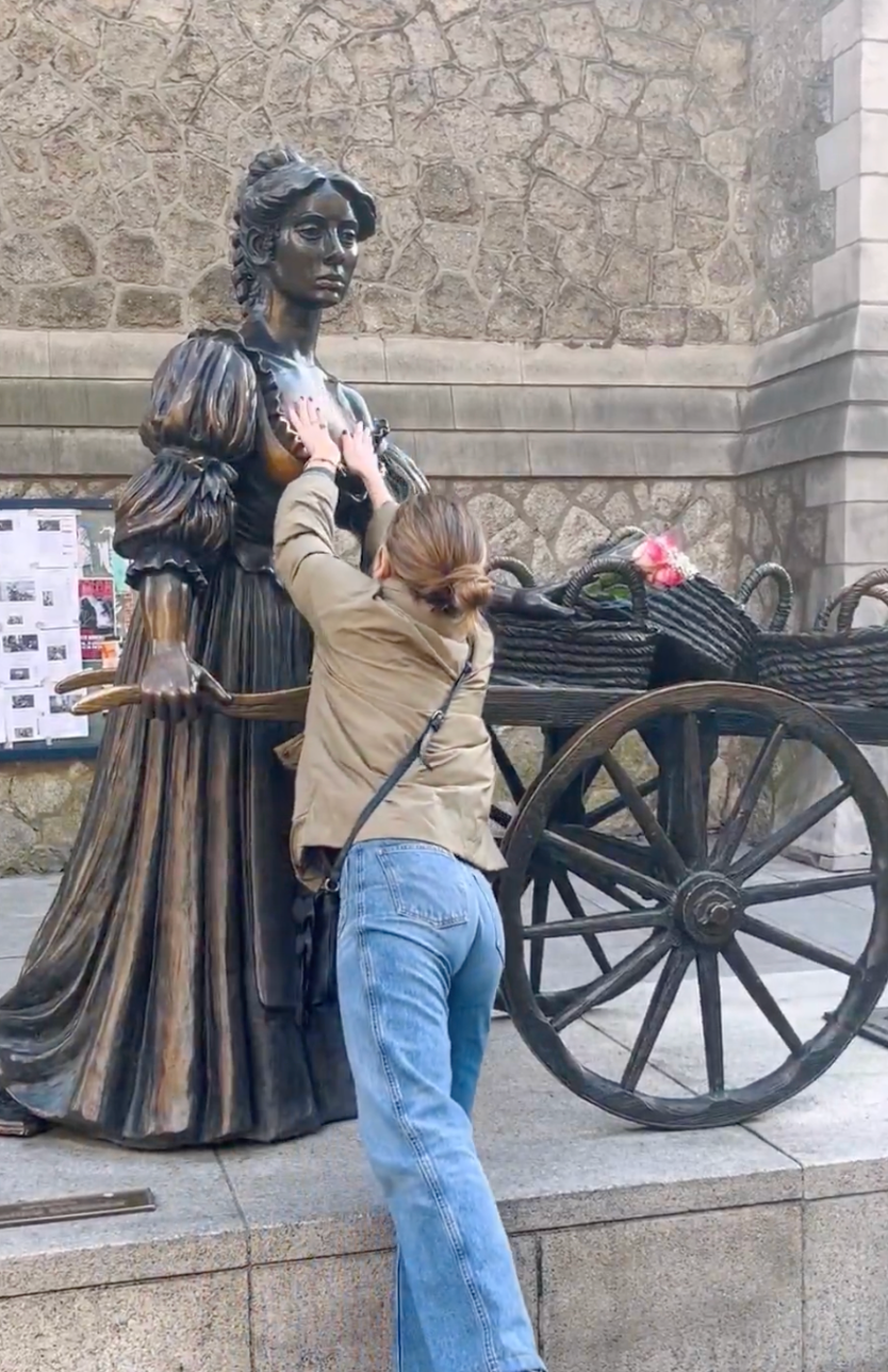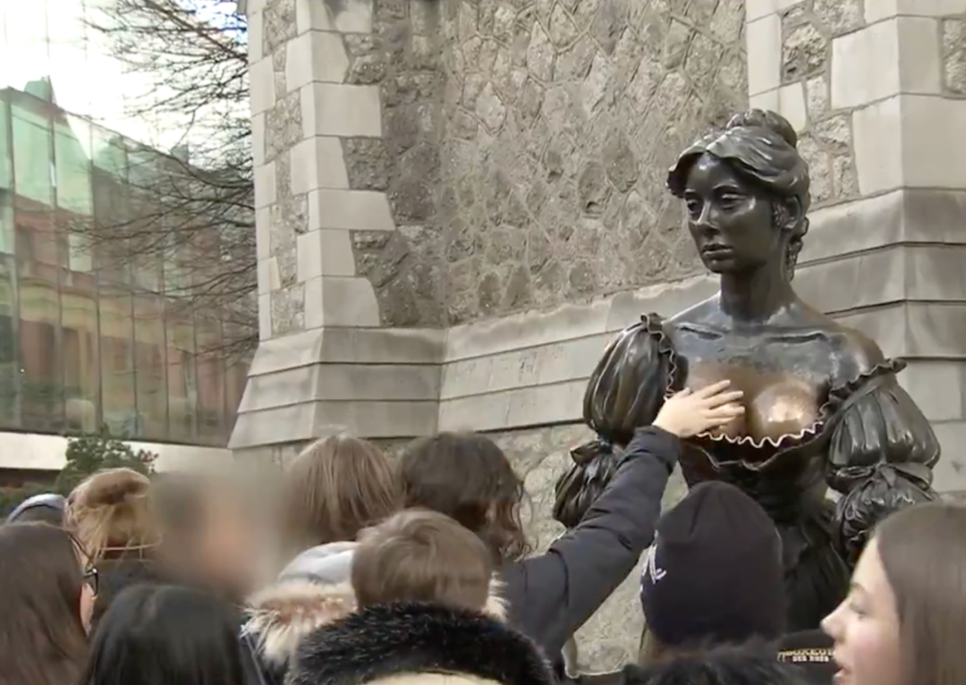 当时,这位导游突发奇想,鼓励他的团员上台阶一步触碰莫莉雕像突出的胸部。导游说,这位女主的名声很大,游客们触碰她的胸部说不定能带来好运。