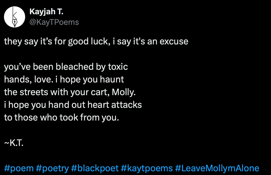 甚至有网友为莫莉的困境创作了一首现代诗: