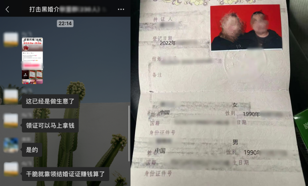 当地婚介公司安排他和一名女生见面,两天后,两人登记办理结婚证。
