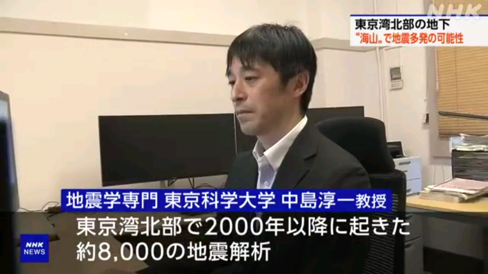 中岛教授表示,明治时代,东京湾这一带曾发生过里氏7级地震。希望通过分析地震活动,缩小可能发生大地震的区域。