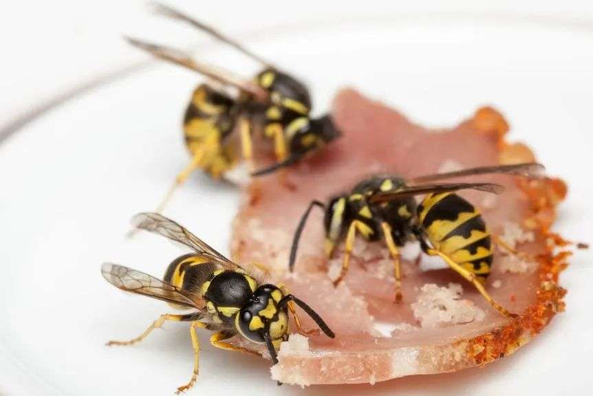 欧洲黄蜂到了这个季节,巢里越来越大,黄蜂也越来越饿,尤其喜欢吃肉和甜食,以及垃圾里的食物残渣,完美瞄准我们人类的日常饮食。