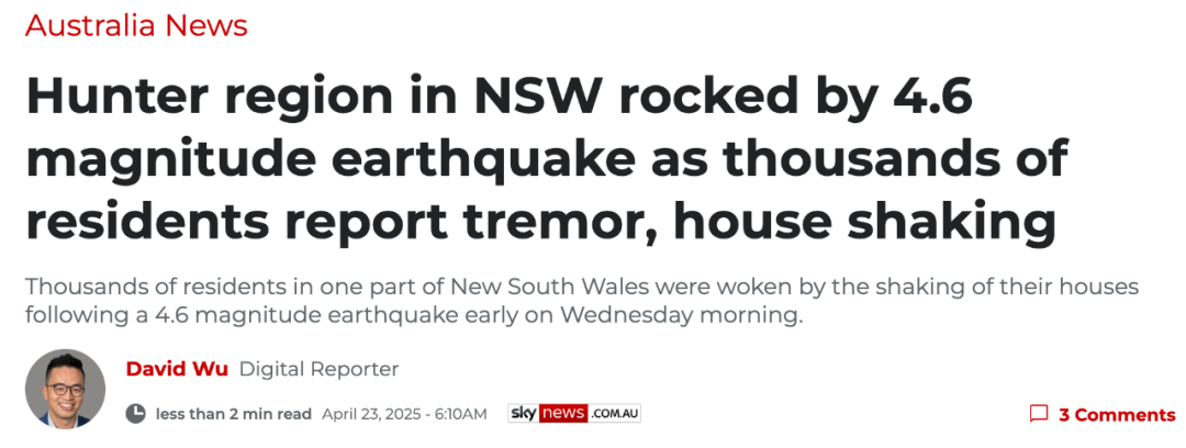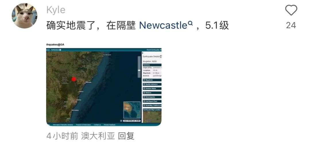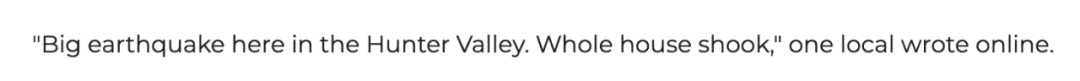一些当地居民表示,Hunter Valley发生强震了,整栋房子都在晃动!