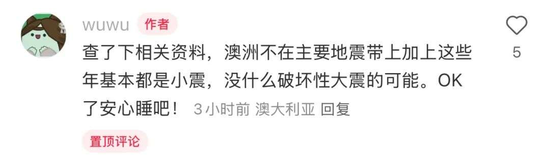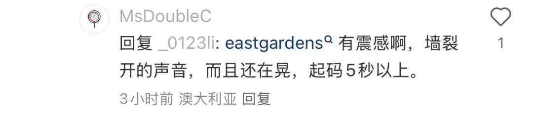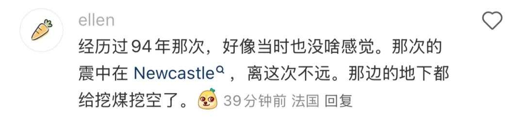 "虽然Hunter Valley之前发生过多次地震,但这是我第一次亲身感受到。希望大家都平安无事。"