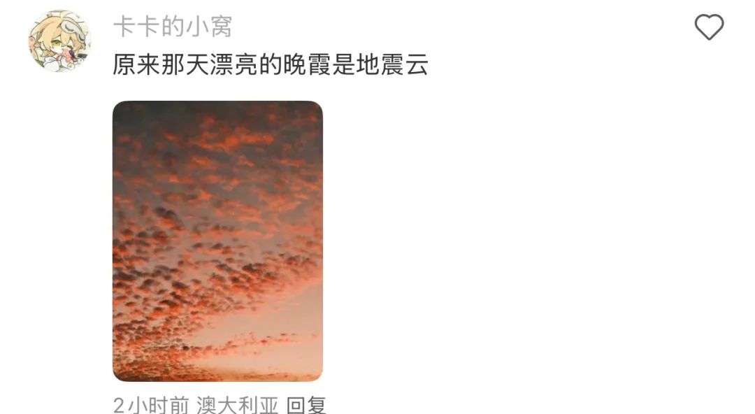 还有人记录下了当天晚上漂亮的晚霞...