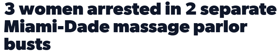 据美媒报道,佛罗里达州迈阿密警方近日在一项针对人口贩运的卧底行动中,逮捕了三名华裔女性,涉嫌在当地非法经营按摩店并提供性交易服务。