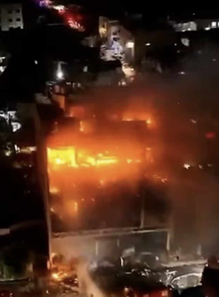 现场视频显示,整座建筑很快被烈焰与浓烟吞没,有人被大火从一楼追,疯狂往楼上逃命,被逼到楼顶,结果还是没逃过,无助徘徊,场面令人揪心。