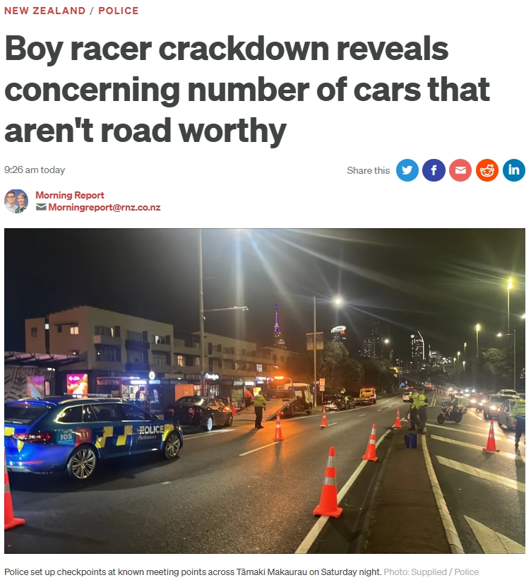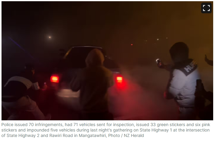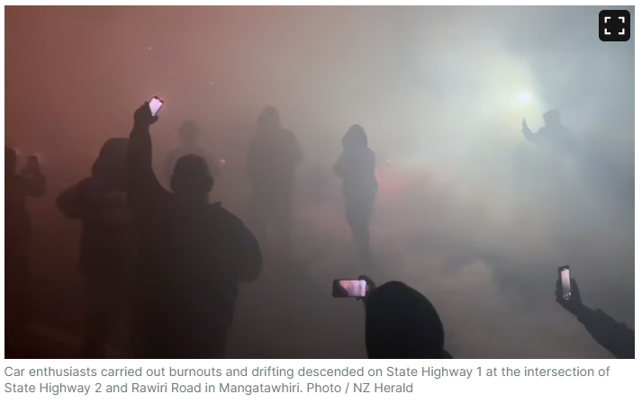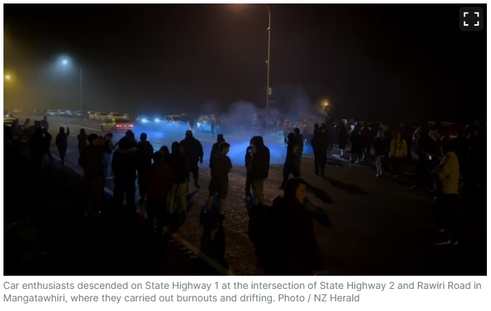 上周六晚,奥克兰的“飙车族”分别从Manukau, Onehunga, Westgate, Penrose, Drury 等多个地点出发,最终在南区以南SH 2和Rawiri Rd集结。