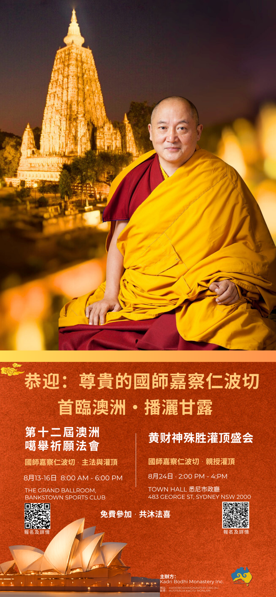 收藏國師嘉察仁波切首臨澳洲 · 八月親授兩場殊勝灌頂