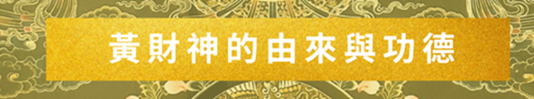 當釋迦牟尼佛宣說大般若經時,諸魔鬼神皆來障礙破壞,讓山林崩塌,大眾驚惶,此時,黃財神現身保護法會會場及眾弟子。釋迦牟尼佛咐囑黃財神護衛佛法,於未來世,協助利益一切貧苦眾生,從此黃財神成為佛教密法的護法,掌管無盡的財庫,係諸財神的領袖,此為黃財神化現之因緣。