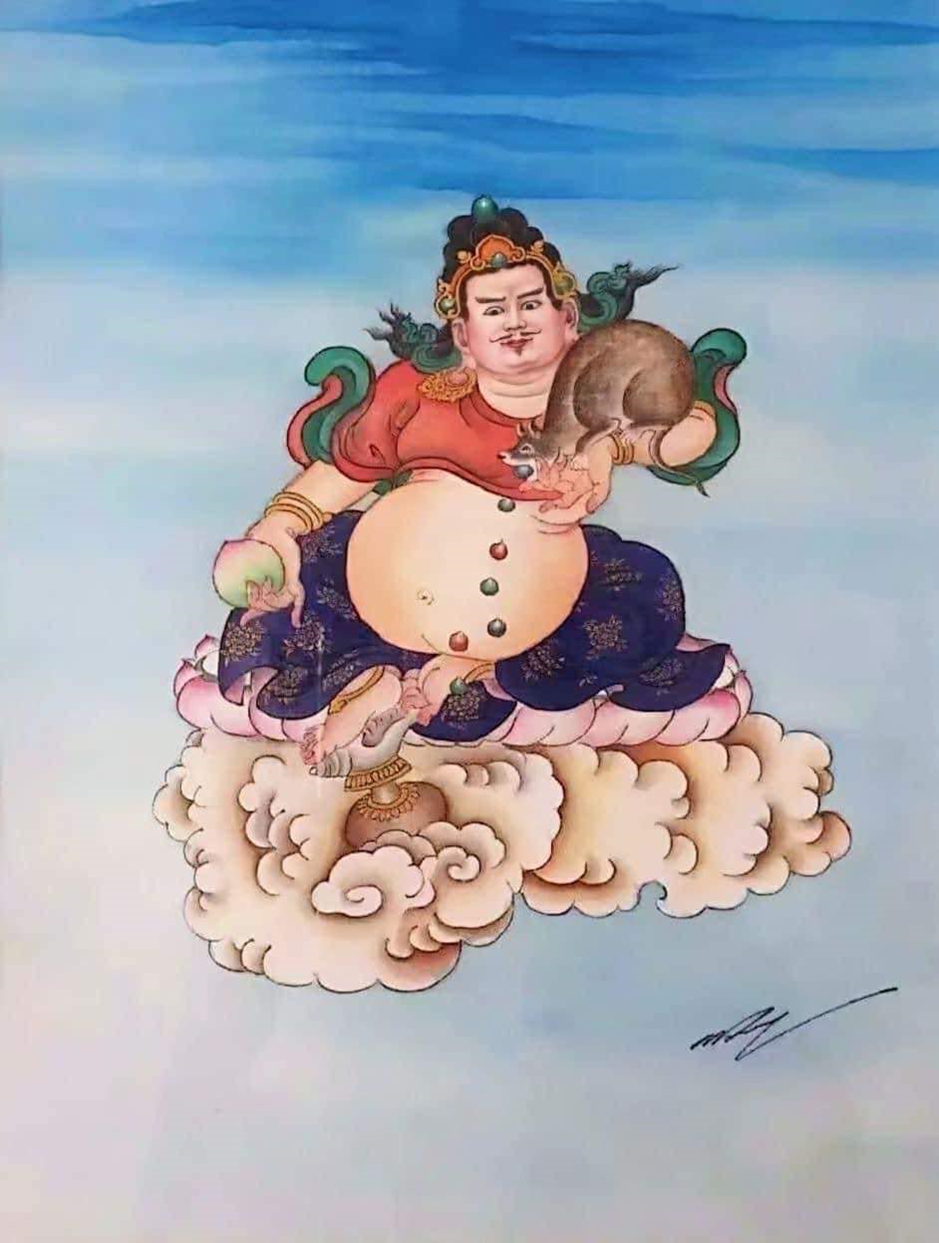 財神乃由觀音菩薩大悲之淚所化現,為解除眾生因貧困與匱乏所生之諸多痛苦而應化出現,象徵事業、福德、財富与壽命的增長。