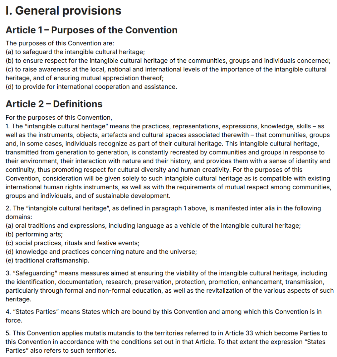 《保护非物质文化遗产公约》内文截图。