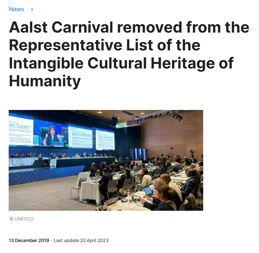 2019年,联合国教科文组织将比利时阿尔斯特狂欢节从遗产名录中移除。