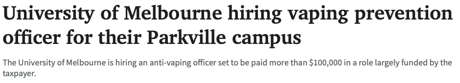 他们正在招一位“反电子烟专员”(Vaping Prevention Project Officer),年薪高达 10万澳元以上!