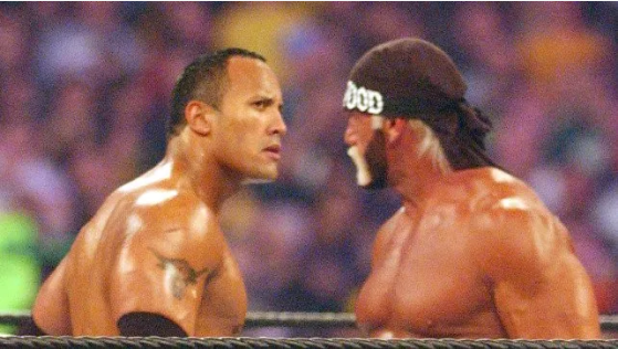 2002年,他又与正值巅峰的巨石强森在WrestleMania舞台上硬碰硬,哪怕败下阵来,场下仍放话:“我现在的状态比他更好。”
