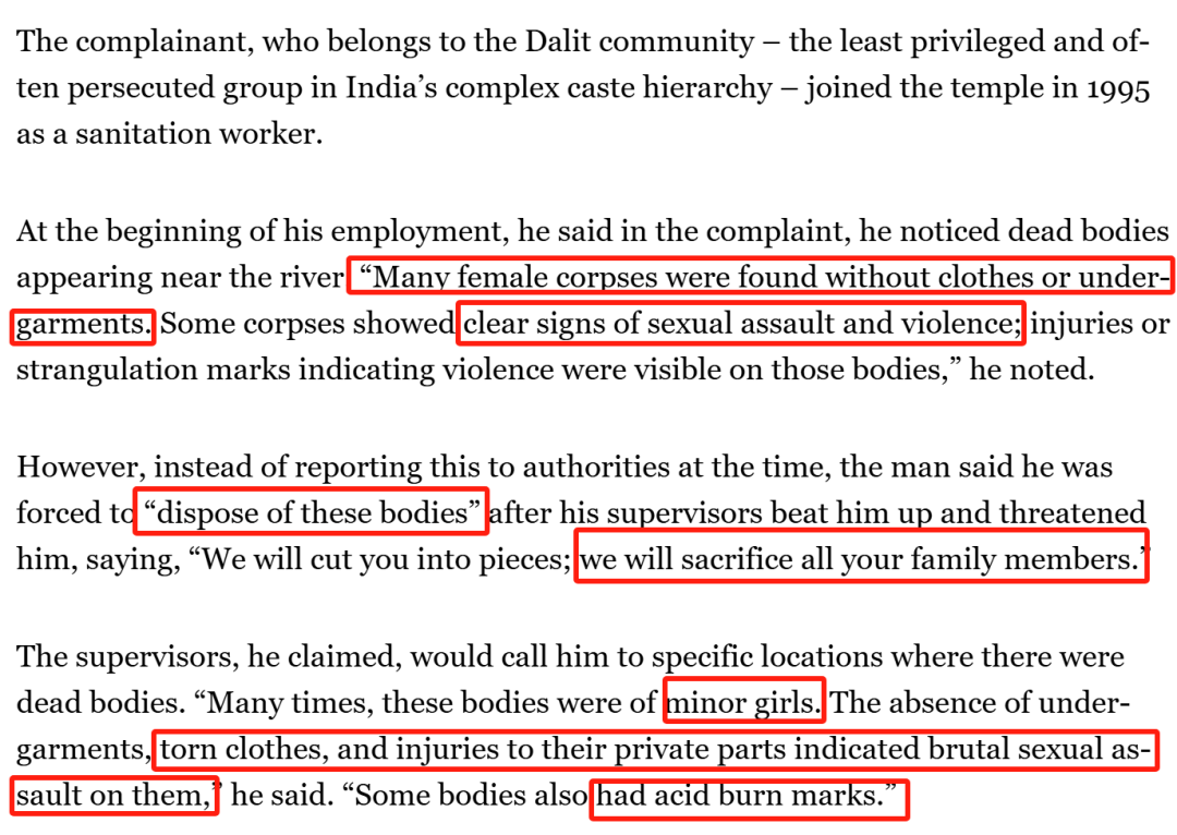 事实上,这个Dharmasthala寺庙已经不是第一次被卷入强奸谋杀的风波中了——