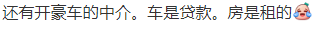 还有开豪车的中介。车是贷款。房是租的