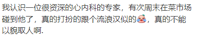 我认识一位很资深的心内科的专家,有次周末在菜市场碰到他了,真的打扮的跟个流浪汉似的,真的不能以貌取人啊.