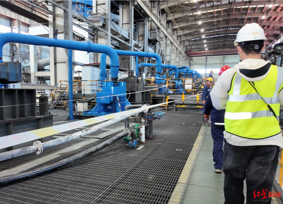 红星新闻记者7月25日现场观察看到,两台浮选机中间的格栅板距离绿色通道有两三米的距离。但现场工作人员告诉记者,通道下方也是一样的,通道上的绿色垫子是为了防止鞋跟卡住而铺设。