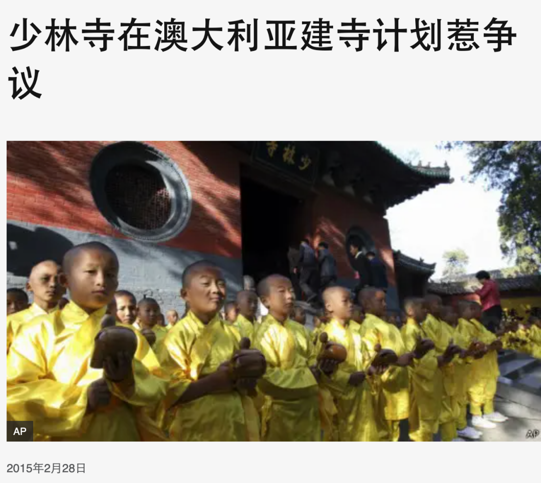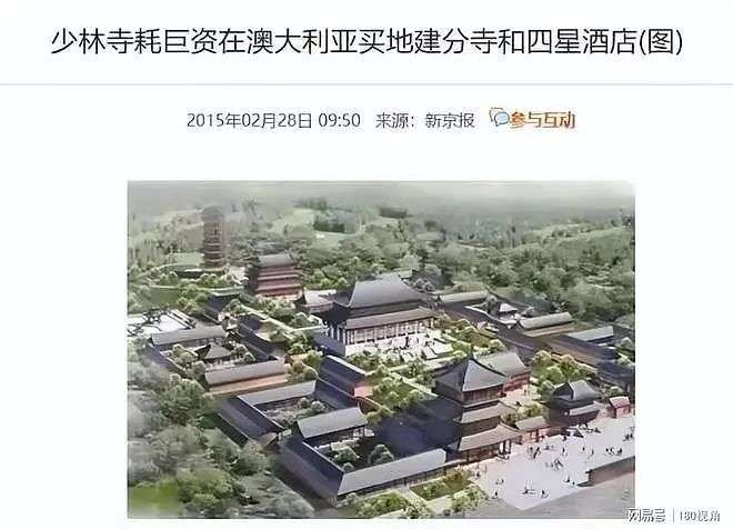 除此之外,早在2015年,少林寺就将商业触角伸展到海外,在澳大利亚买地,建立分寺和投资酒店。