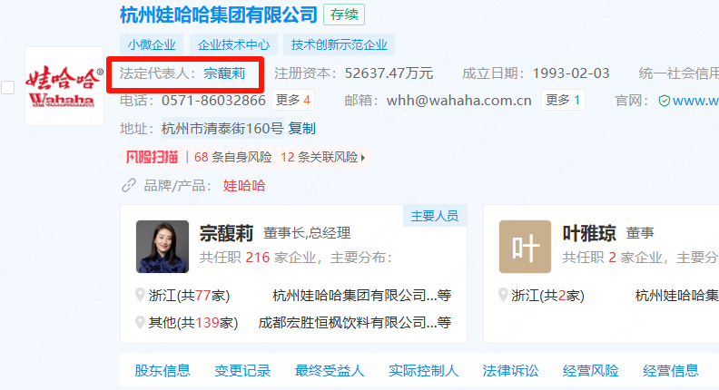 宗庆后生前持有娃哈哈29.4%股权,现由宗馥莉继承。