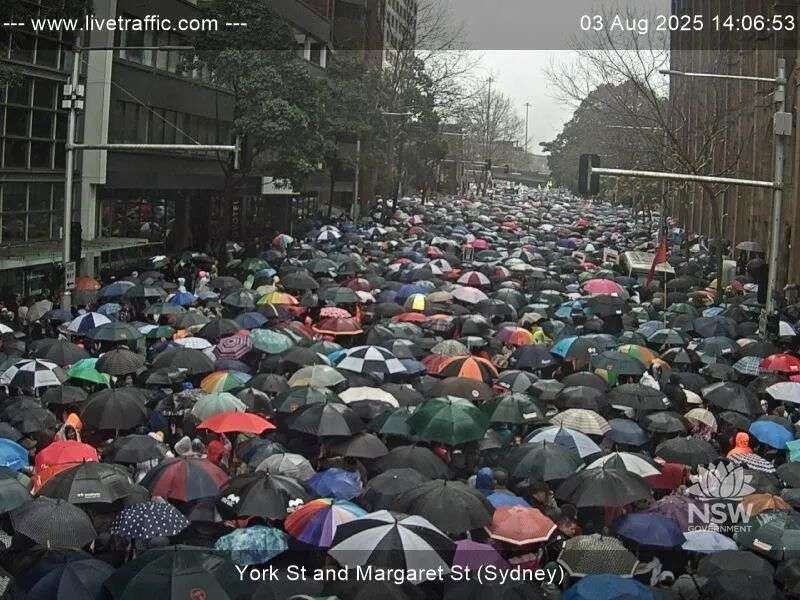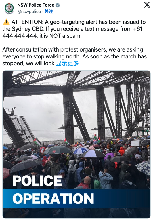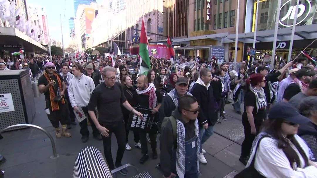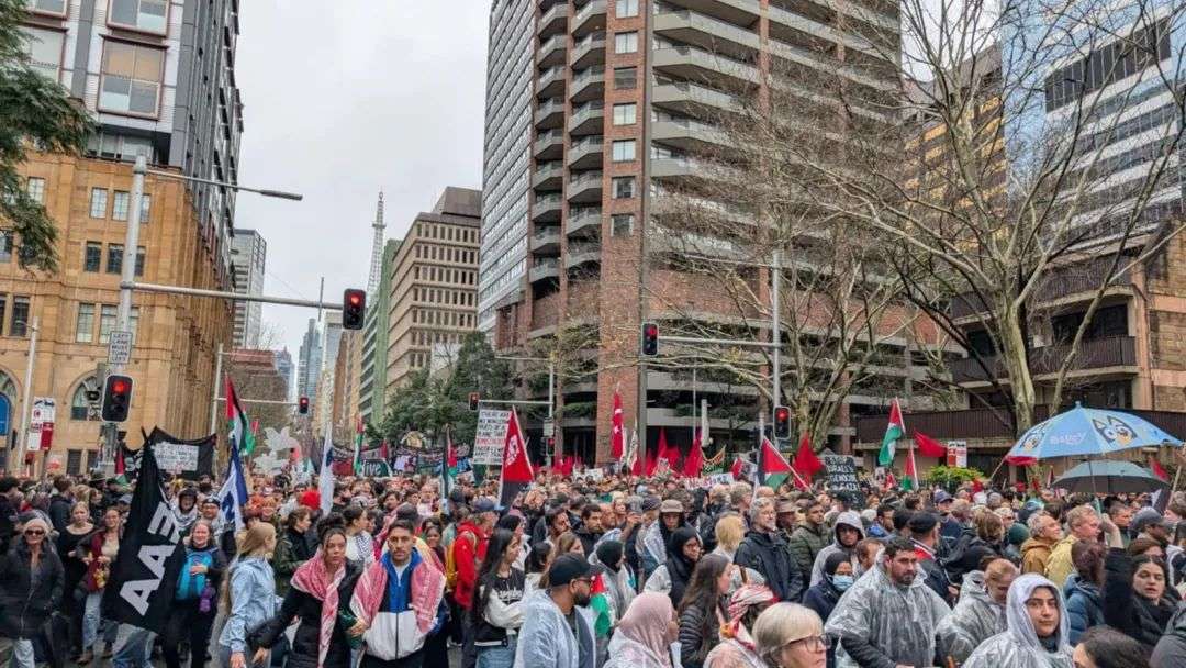今天下午,悉尼市中心爆发由约10万人参与的大型游行,声援巴勒斯坦。