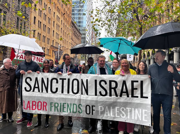 带头穿过海港大桥的工党议员Ed Husic呼吁澳洲政府制裁以色列,承认巴勒斯坦国。他表示,“这是一次和平而有力的集会”。