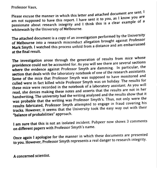 澳大利亚国家卫生与医学研究委员会(NHMRC)认定,Smyth的行为违反了研究诚信准则。