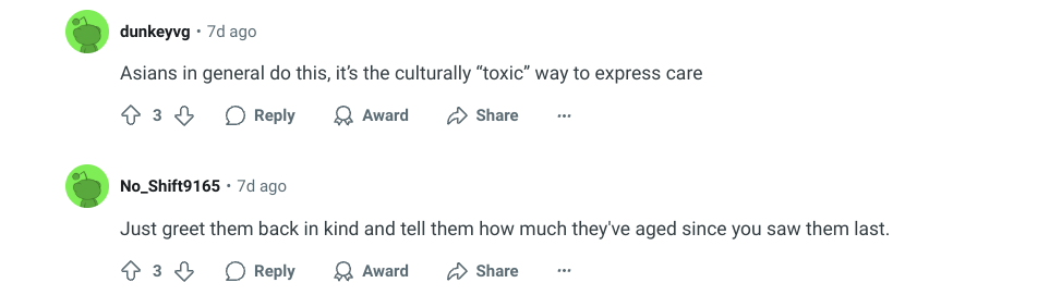“亚洲人一般都会这样做,这是一种文化上’有毒’的表达关爱的方式。”