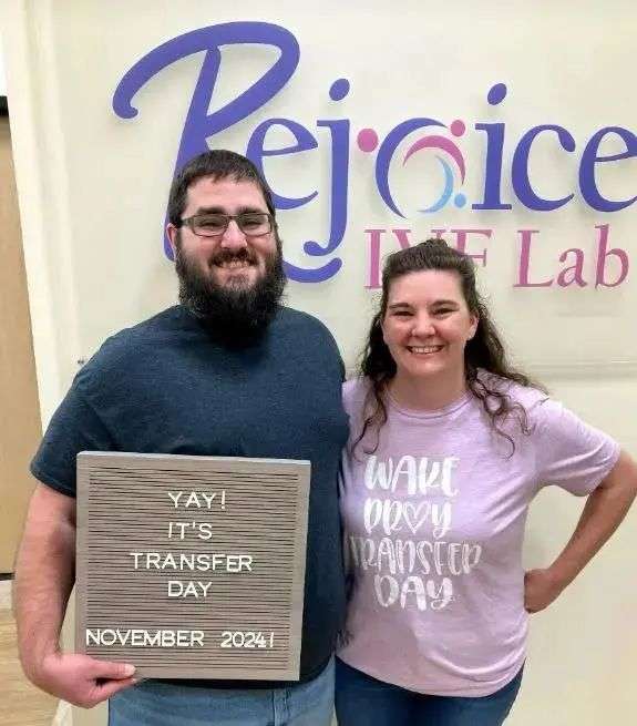 ▲移植胚胎当天,林赛和蒂姆·皮尔斯合影