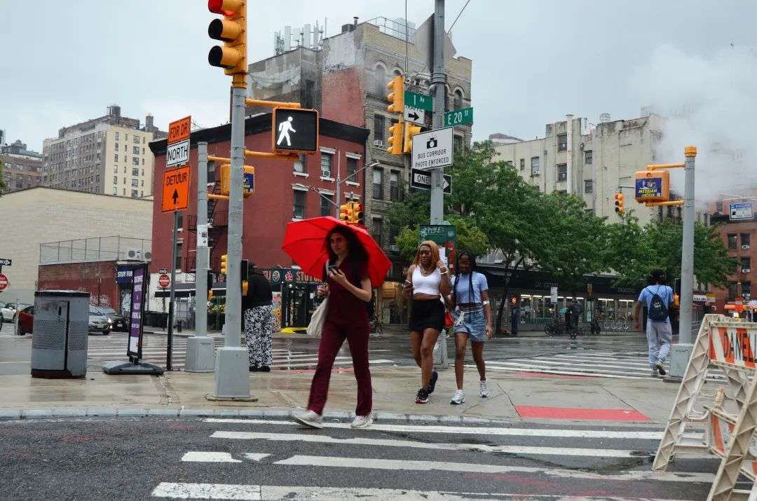 7月31日,人们冒雨走在美国纽约街头。图源新华社
