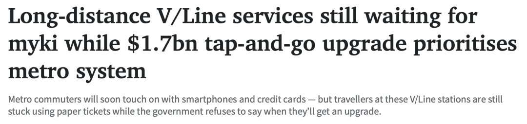政府不肯明确时间表,意味着成千上万的地区通勤者,仍要依靠早已过时的纸质车票,或用不上myki读卡器的“电子票”。