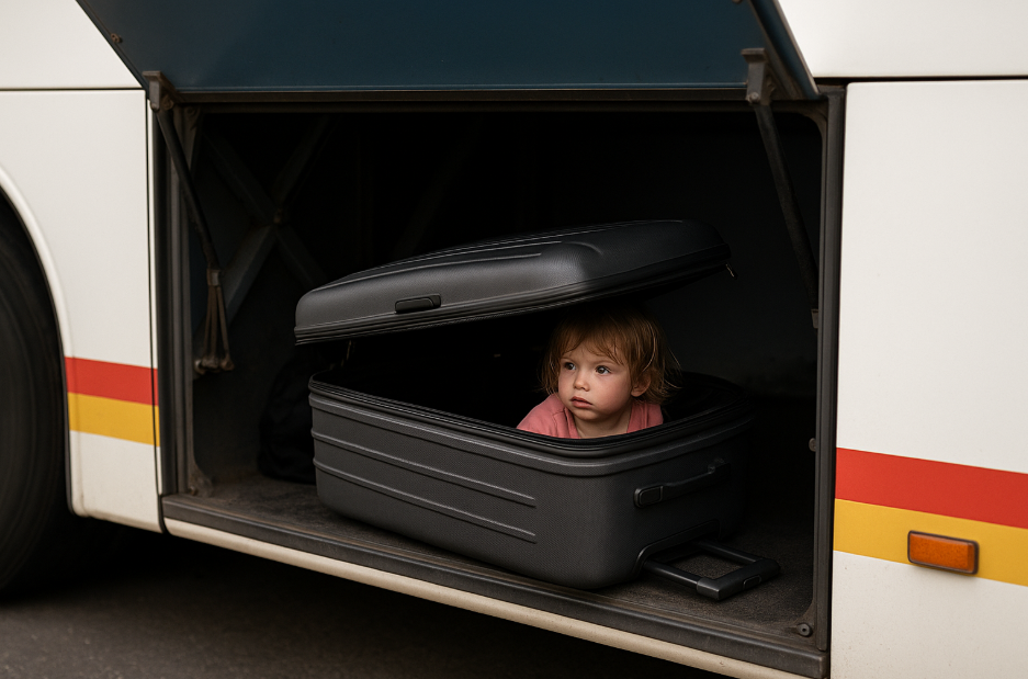 昨日下午(8月3日),在新西兰一辆长途巴士的行李舱内,有人发现一名两岁女童被藏在行李箱中!