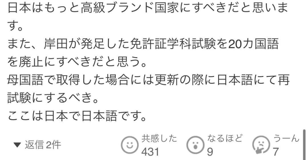 另外,岸田政府推行的驾照笔试提供20国语言服务,我认为应该废除。