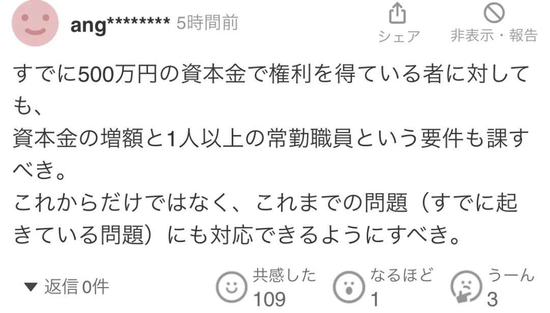 什么概念?原本500万日元就能打通的关卡,现在需要3000万日元(约150万 rmb)起步,而且还必须至少雇一个正式员工。简单点说,没有真金白银,就别想玩“开公司移民”或者开皮包公司做点移花接木的犯罪游戏了。
