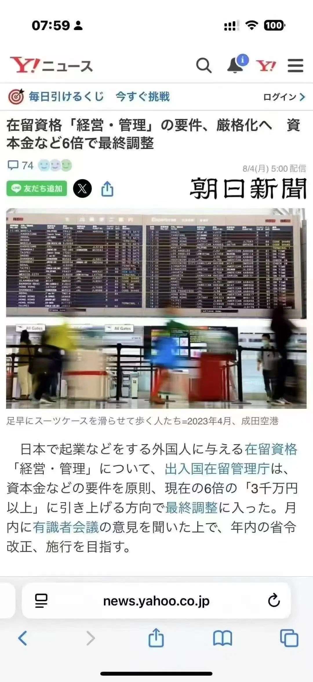 收藏重磅消息:日本经营管理签证大变天!难度飙升!资本金门槛提高6倍!并新增强制雇佣员工要求!
